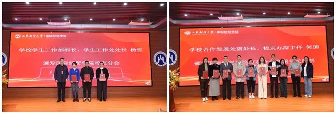 学生工作部部长杨哲、何珅分别为副会长、秘书长、副秘书长颁发聘书。